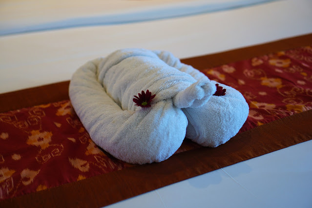 There was a folded towel shaped of a turtle to welcome guest in the room. Isn't it cute?
